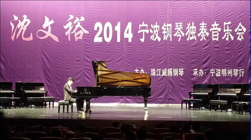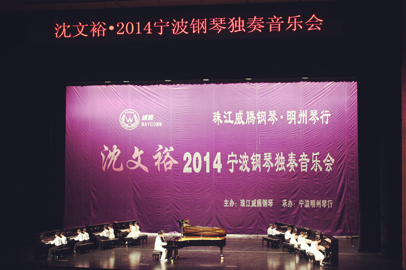 2014年11月7日,寧波保利大劇院,隨著被音樂界譽(yù)為“天才演奏家”、“琴鍵上的博爾特”、“莫扎特第二”的青年鋼琴家沈文裕一曲《野蜂飛舞》演奏完畢,由珠江德華鋼琴公司與寧波明州琴行聯(lián)合舉辦的“珠江威騰/沈文裕寧波鋼琴獨(dú)奏音樂會(huì)”成功落下帷幕。珠江德華鋼琴公司與青年鋼琴家沈文裕合作,以音樂會(huì)、公開教學(xué)課等形式,為廣大鋼琴專業(yè)師生和音樂愛好者奉獻(xiàn)高雅藝術(shù)盛宴。