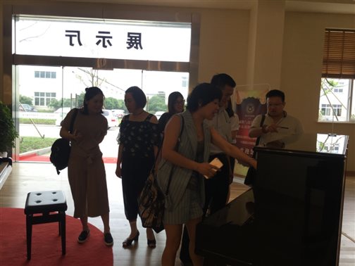 6月20日,江西優(yōu)秀經(jīng)銷商參觀團(tuán)一行10人到我司訪問交流,受到公司領(lǐng)導(dǎo)的熱情接待。在公司總經(jīng)理伍銳偉的帶領(lǐng)陪同下,經(jīng)銷商們先后參觀了威騰鋼琴產(chǎn)品展示廳以及生產(chǎn)車間。
